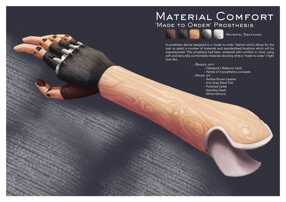 Aesthetics of Prosthetics is the title for my MSc dissertation project, it explores how the aesthetics of prosthetic limbs affect the wearers and creates a series of design that are more in line with what prosthetics wearers may want.